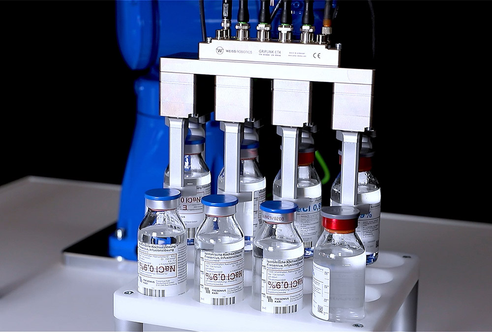 In life sciences applications, the quality of handling determines the quality of the result: vials, syringes, tubes, or microtiter plates must be moved safely, gently, and without risk of contamination – while maintaining high cycle rates. WEISS ROBOTICS supplies gripping technology that combines purity and process reliability: compact, hygienic CLG grippers for fine laboratory handling and STERIGRIP modules for aseptic cleanroom and isolator processes. If you want to get started quickly, choose GRIPKIT LS and automate typical laboratory workflows in no time at all with plug-and-play.